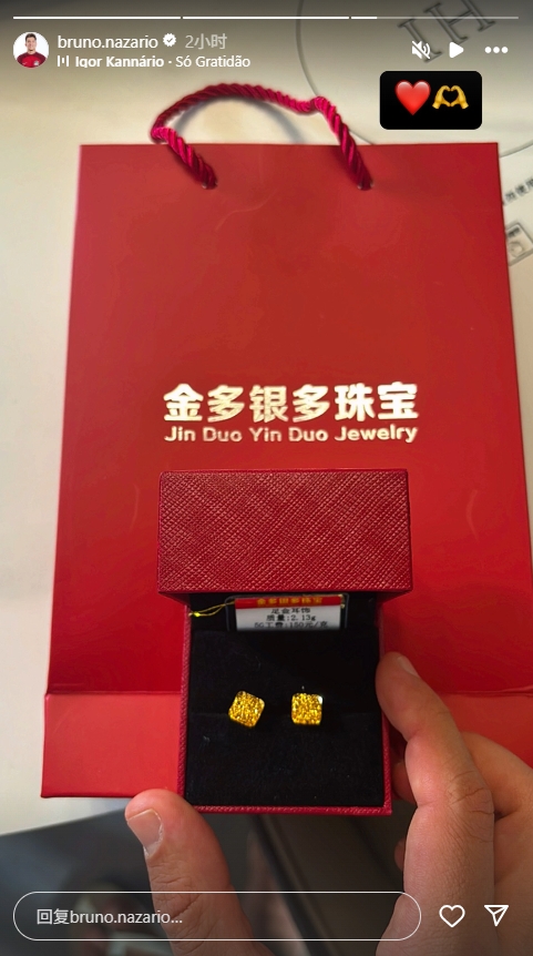 04月26日訊 昨日是河南外援納薩里奧與妻子結婚12周年紀念日,納薩里奧給妻子買了一對足金耳飾。